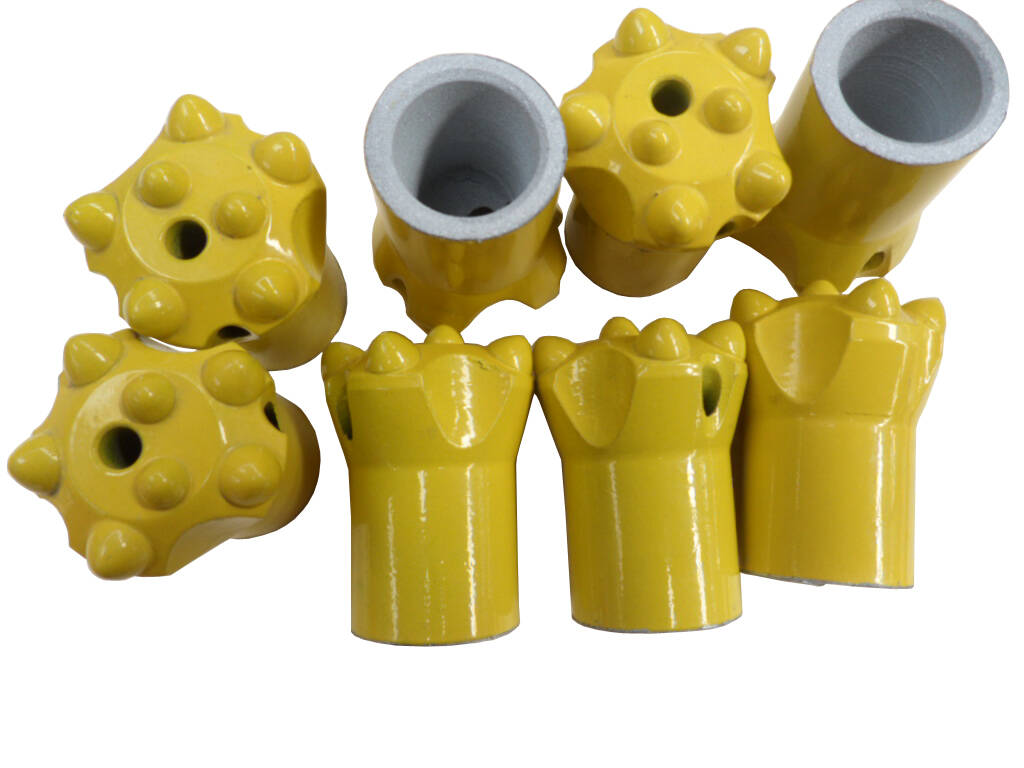 TAISHAN button bit is ones of our rock drillign tools , our button bit include tapered button bit and thread button bit , 7°11°12° button bit is our main products ,the button we can provide 6 button ,7 button and 8 buttons the hole inside is 22mm or 25mm ,match the hex drill rod together to dill all kinds of rock ,we put to use the perfect tungsten carbide and steel ,the quality is the better than others ,
