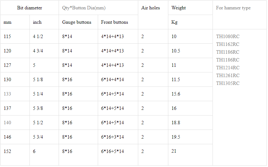 TAISHAN reverse circulation drilling bits are conducive to get a straight line for the drilling via our bit face and 8 exhaust channels designs. The bit size range are available from 104mm to 370mm, which can be suitable to nearly all drilling requests.