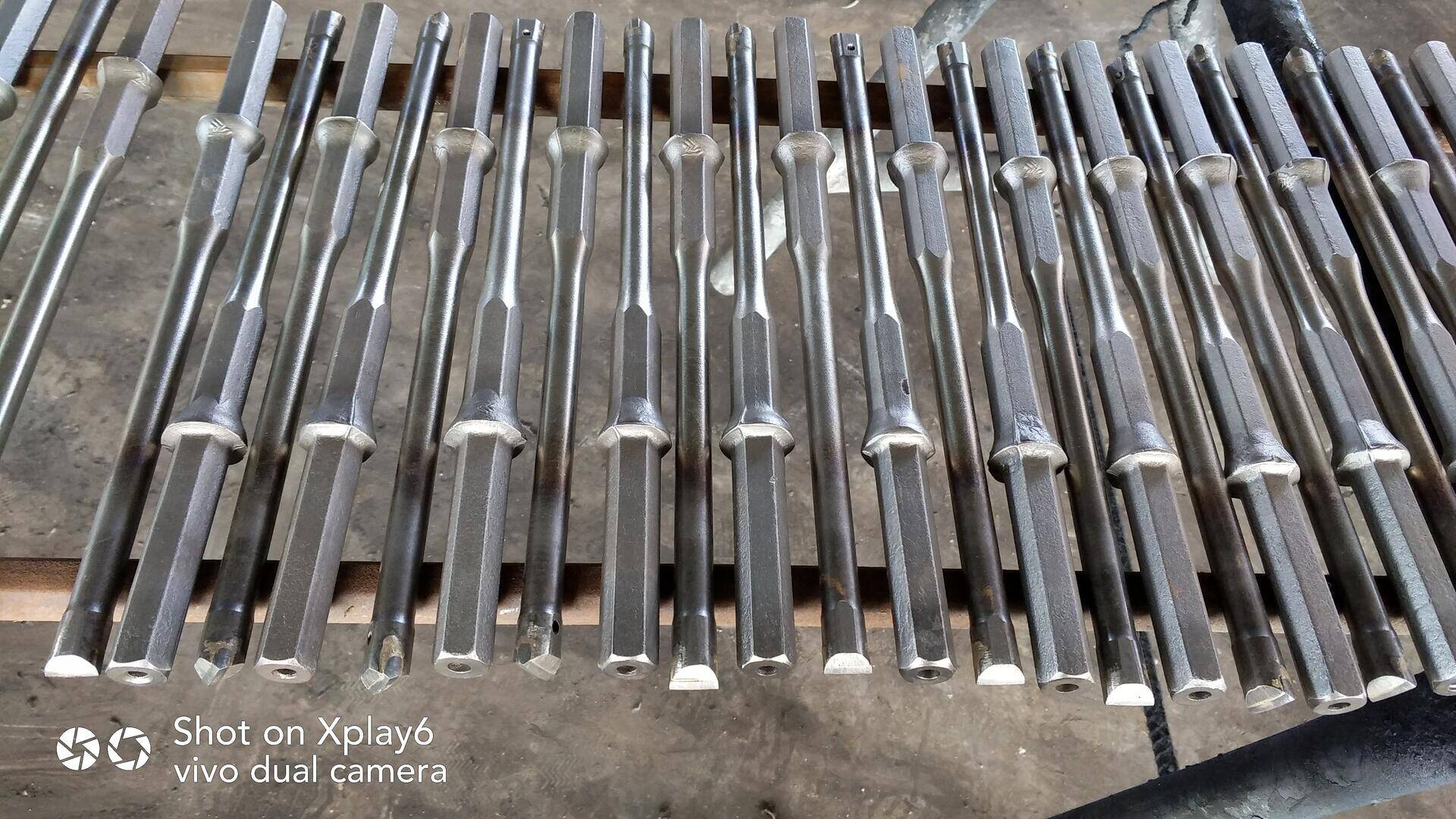 TAISHAN Integral Drill Steel is used by a hand held drill machine in Underground mining and for small hole drilling, equipped with small power rock drills, like air leg rock drills, hand held rock drills, etc. It can reduces the expense of impact energy, improves the drilling speed and efficiency, also it can be used for drilling bore hole diameter from 25mm to 43mm usually. Regarding Integral drill steels,the quality of a steel material and a tungsten carbide is very important to get good drilling performance.