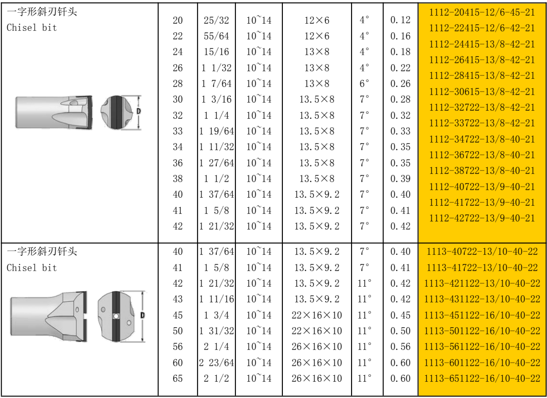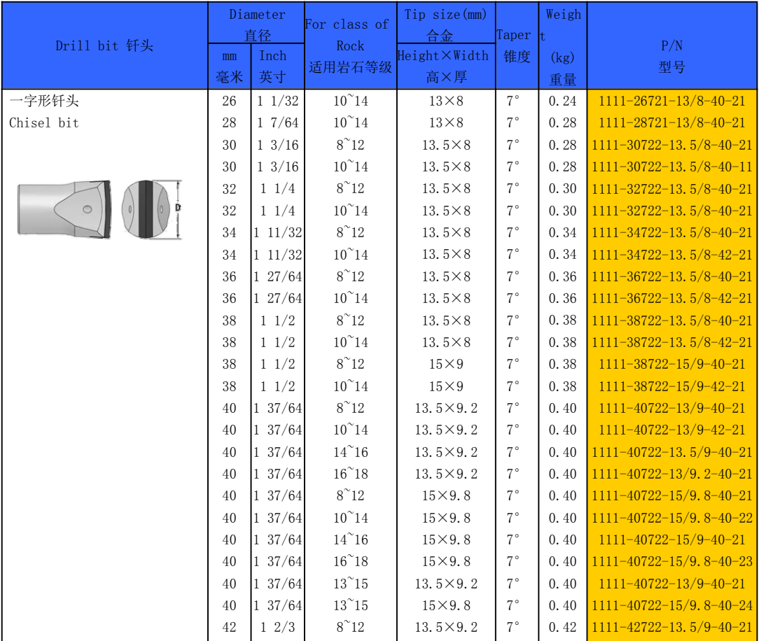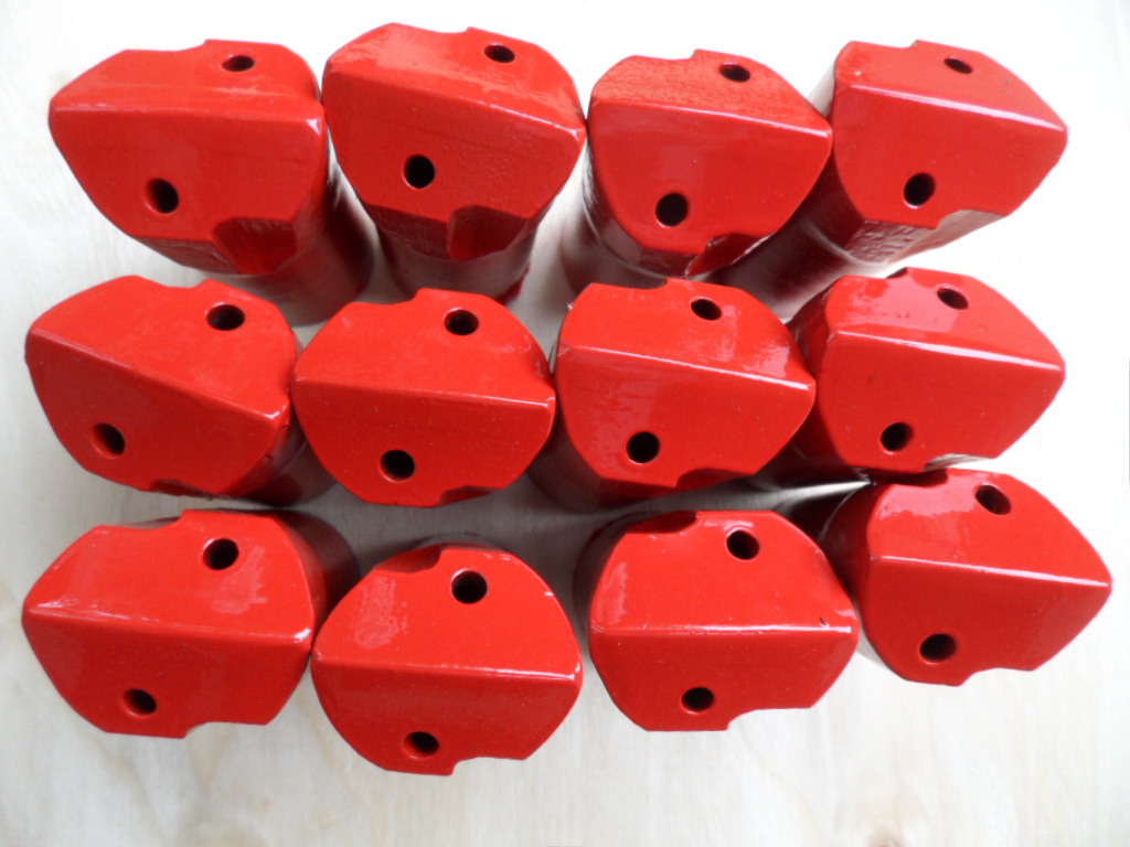 TAISHAN Tapered Chisel bit carbides shape are chisel type on drill bits. same as taper chisel bits, they have different taper degree and diameters. Meanwhile cross bits are Usually all carbide tips, including chisel, cross or button types, before carbides run out, carbides can be grind to be sharper when carbides are wear out.