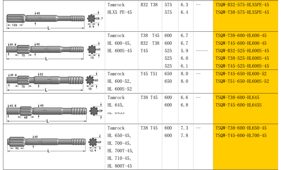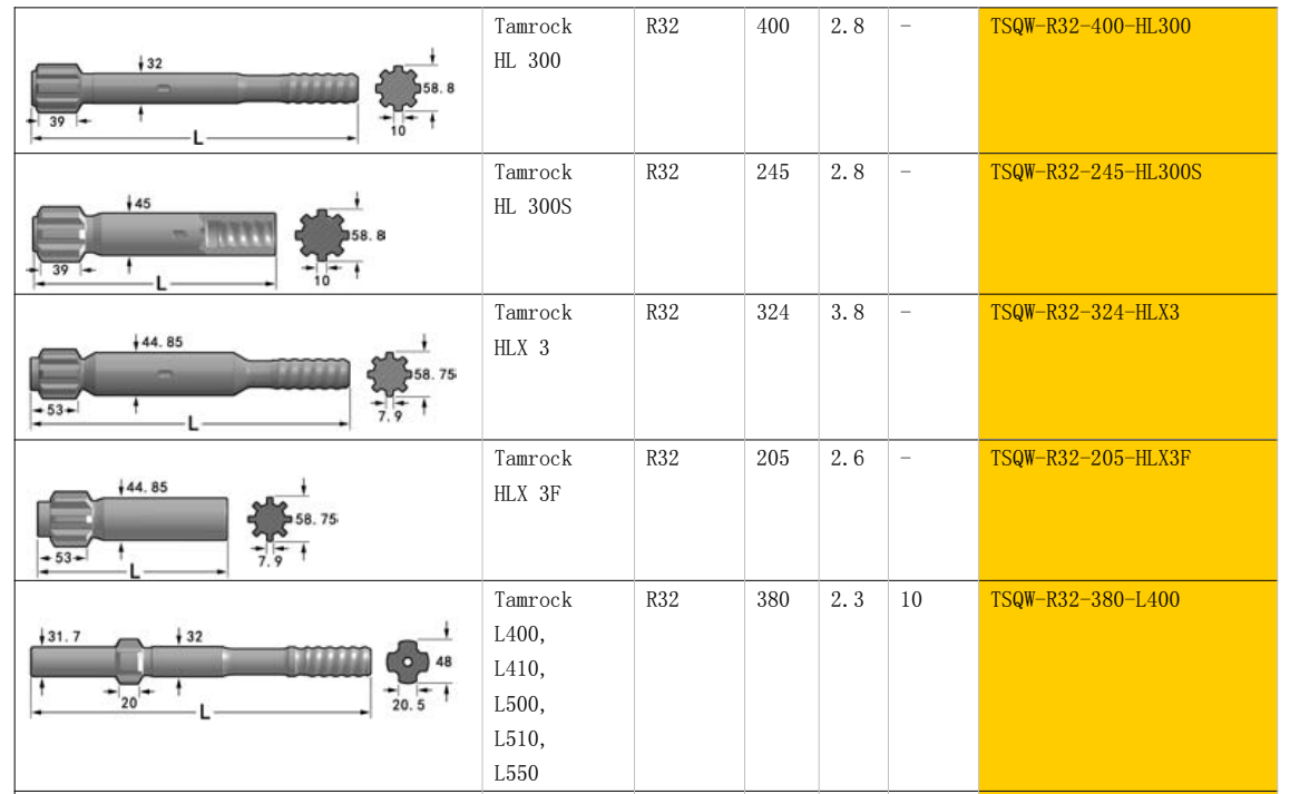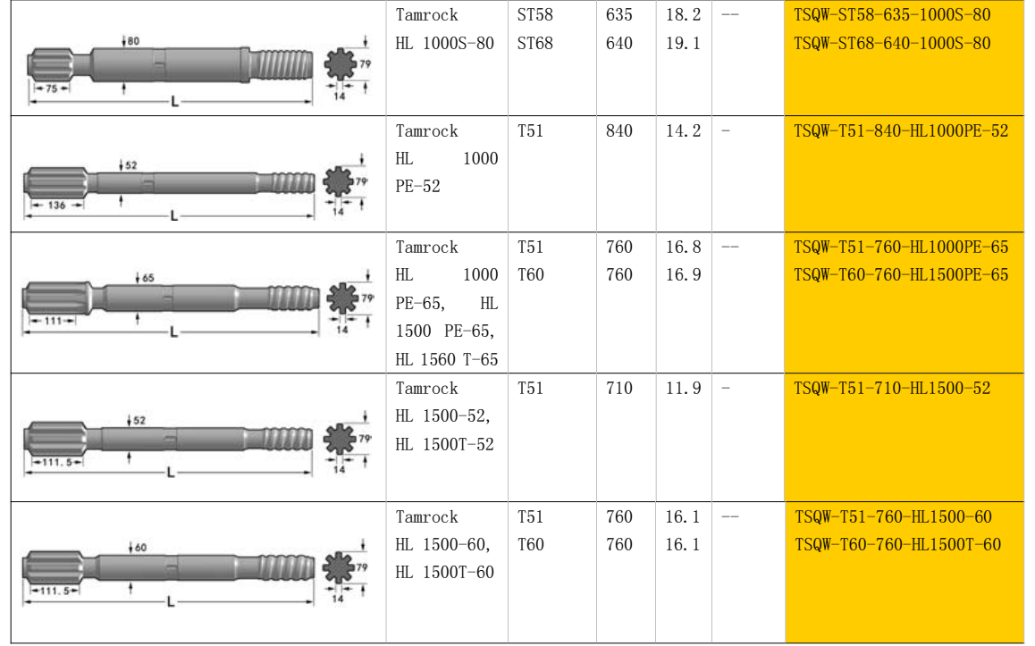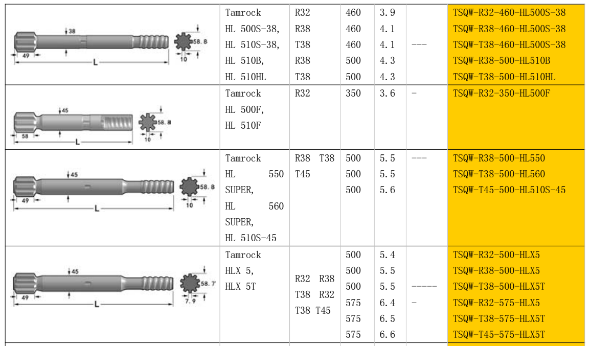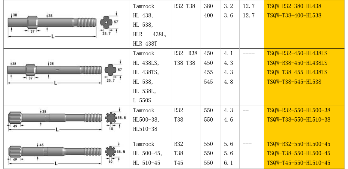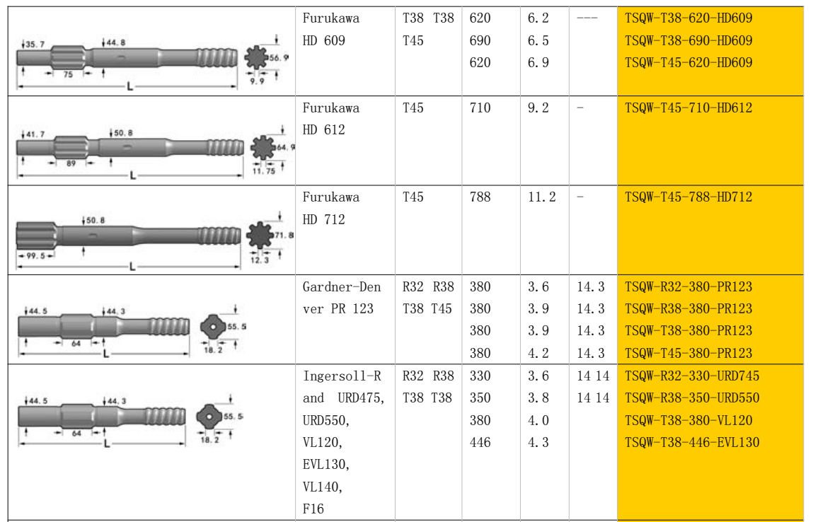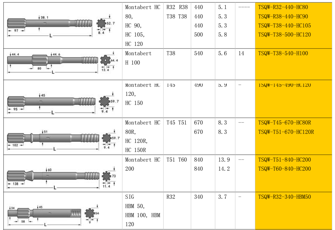 Shank adaptor is used for transmitting power between drill machine and drill stems. One end is to connect drill machine, another end is to connect drill stems, by this way, the power from drill machine is transmitted to drill bits, finally the rocks are cut . shank adapters, couplings, extension rods, threaded cross bits and threaded button bits belong to threaded drilling products. And our shank adaptors are available for,Atlas Copco: COP 1038HL,COP 1238,COP 1432,,COP 1532, COP 1440, COP 1838 HD, COP 1838 etc 。