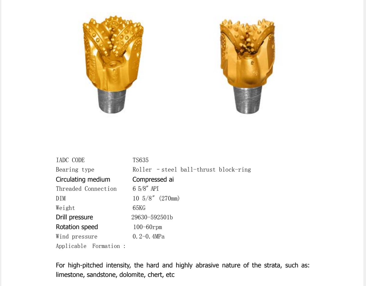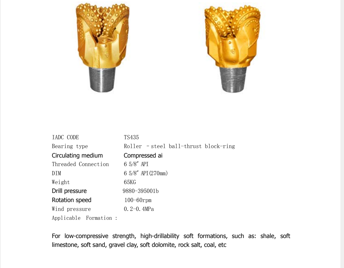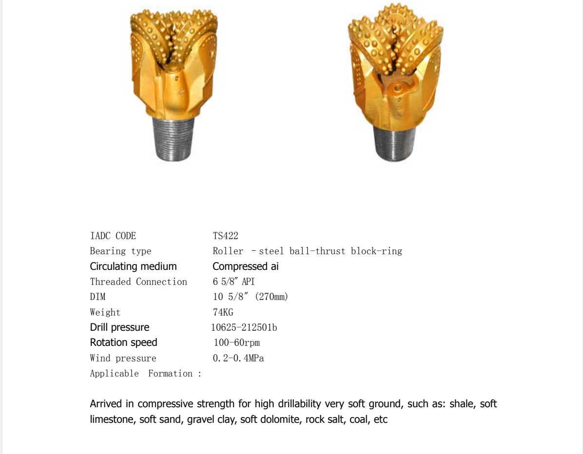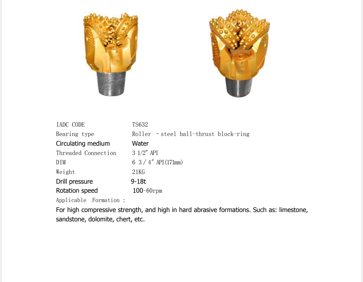 TAISHAN Tricone bits Pilot bit include TCI tricone bit steel tooth bit and PDC bit , Bits that feature long, widely spaced teeth, to drill soft formation such as shales, soft sandstone, clay and all unconsolidated formations. With medium length teeth, closer spaces, to drill unconsolidated limestones, medium sandstones, clay, marls. With short, closely spaced teeth with tungsten carbide hardfacing, for hard and abrasive formations such as sandstones, dolomite, hard limestone and granite.