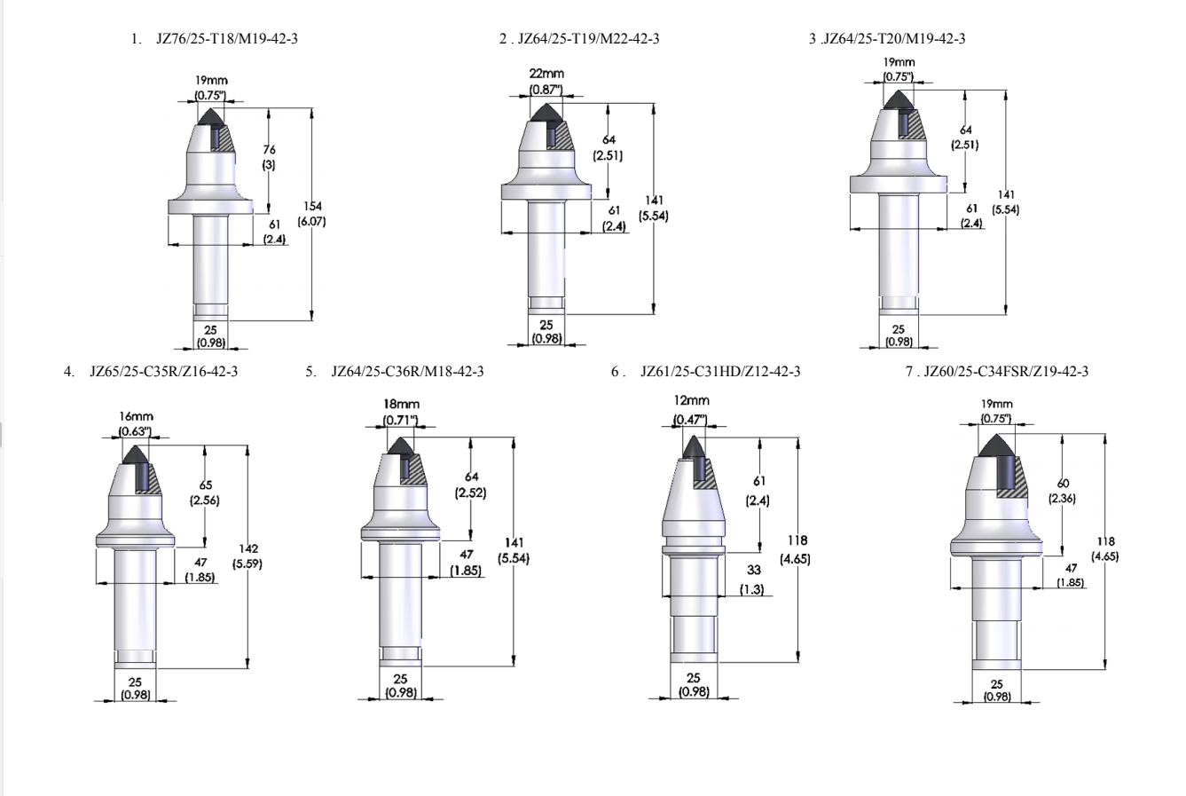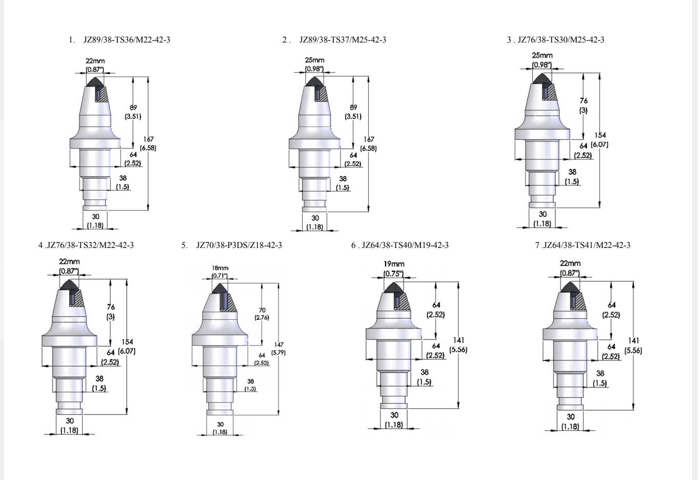 TAISHAN trenching bit (picks) has a range of trenching tools that are suitable for a wide variety of cutting conditions. The cutting tooth SB 38 J is suitable for excavating clay, cobbles (diameter greater than 50 mm), sand, weathered rock and hard rock. The tungsten carbide of the JM type tooth, when compared to the JMK Type, is bigger and therefore more efficient in crushing boulders. The JL and JR Type are mounted at the outer edges of the cutting wheels to ensure the necessary over-cut. The tungsten carbide is hard and tough.